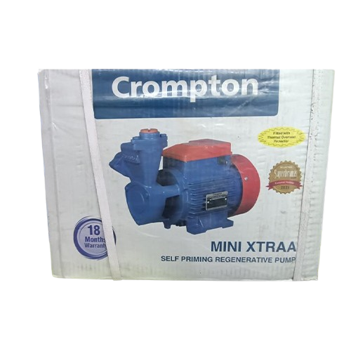 The Crompton Mini Xtraa (1.5 HP) is a compact, high-performance self-priming centrifugal monoblock pump designed for residential and light commercial water supply, such as filling overhead tanks and gardening. It features a 1.5 HP (1.1 KW) motor, robust aluminium pressure die-cast body, brass impeller, and high-quality mechanical seal, offering high suction